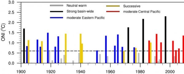 Figura que mostra a evolução dos eventos do El Niño de 1901 a 2017